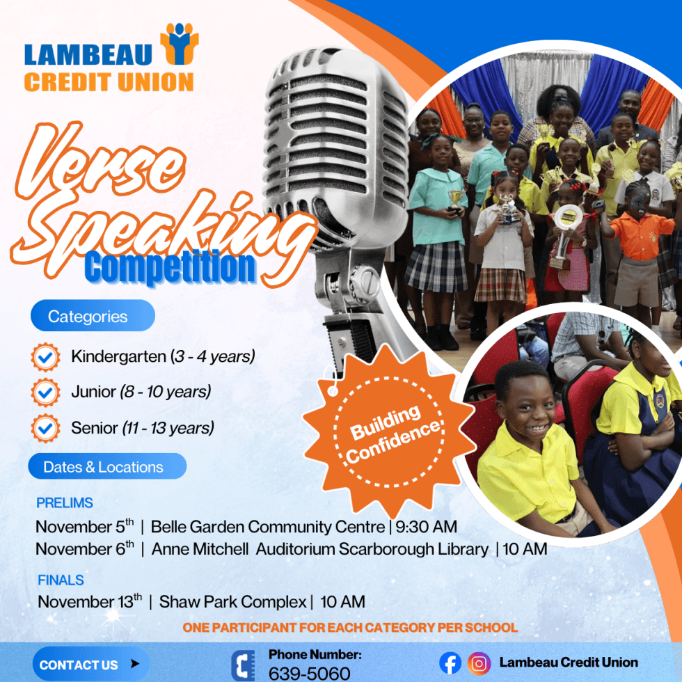 With participation from schools across Tobago, the competition has grown to become a hallmark event, promoting literacy, performance skills, and cultural pride. Each year, children gain the opportunity to showcase their talents while building confidence and developing a lifelong appreciation for the spoken word.